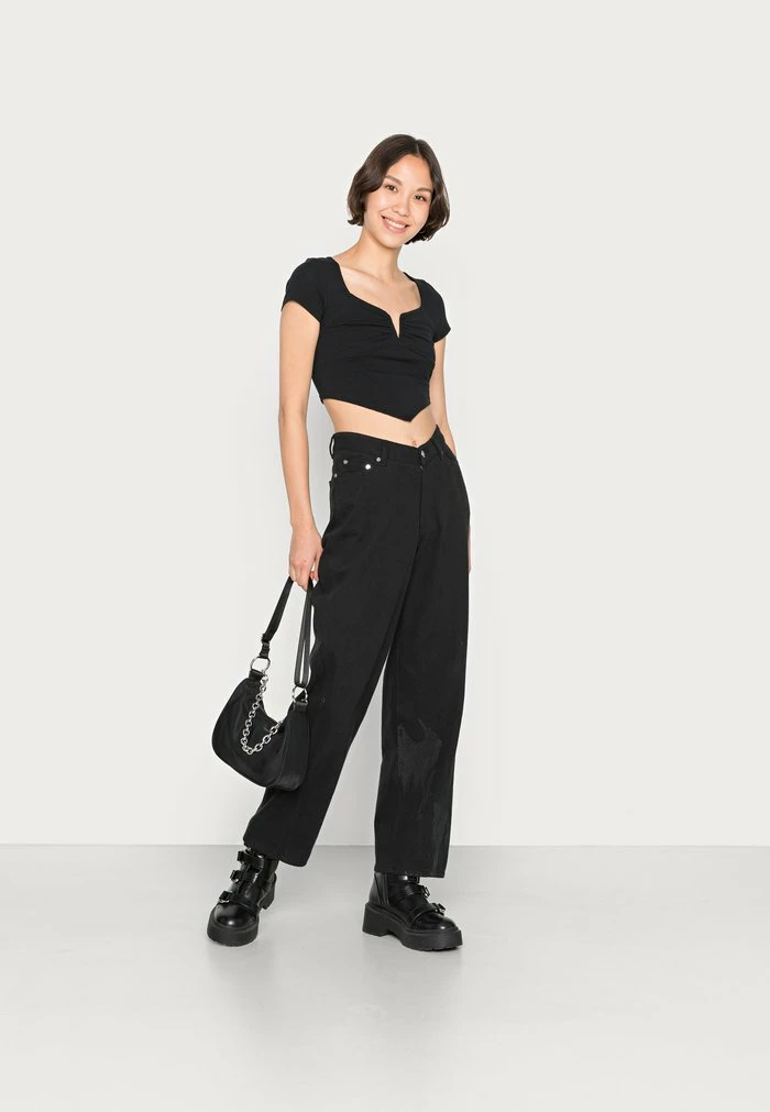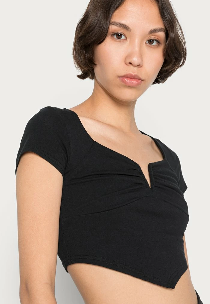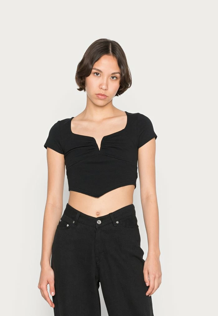 - Neckline: Low-cut v-neck